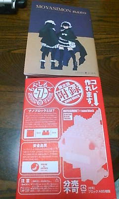 附録のが手前にあるのはわざとですw もやしもん7巻やっとこ買ってきたぜー! 樹先生の語りもふんだんにありまして満足ですvV(そこ?) てな訳で今回のメイン。 7巻別名nano巻。 ナノブロックでオリゼーが作れちゃいます(´`*) 紙に描いてある大オリゼーと小オリゼー同時には作れないらしいのでとりあえず大を作りました。 奥に写っているのは母上の足です(ぇ) ちゃ、ちゃんと自立しよってからに…!! かわゆいです。崩せません。 あぁでも友達に貸出時に崩して貸すって言っちゃったしなぁ~。 返す時に組み立てたまま返してとでも言おうか。 これの横に原子モデルとか置きたいですねw その友達にこの写メ送ろうと思ったけど今日はクリスマス・イブ。野暮なことはやめました← いやー、にしてもかわゆいぁ~♪ 浮世のすべてを忘れたいです(ぇえ)