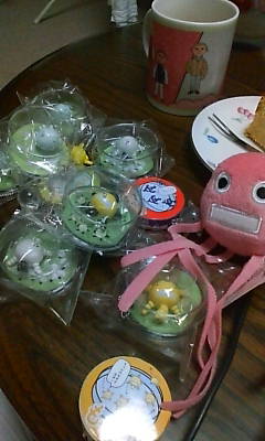 ここは一発菌の話でも。 「感温!かもされグラス」 とふぁずパーティ(…でいいのか)の時の戦利品。 というより同情票的な。 ボウリングでスコア100以上は私のなかでは頑張った方。 欲しかったからいいのです! 実はまだ感温させてませんが(ぁ) ありがとうとふぁ。 湯のみといいジョッキといい飲み物入れるものは結構うちにある。 「圧縮!菌タオル」 水とかお湯に浸けるとハンドタオルになります。 でもこの形を保つことができないので浸けないまま。 多分このまま浸けない気もします。あれ。 どっかのくらげさんにもらいましたw 「XL菌ぬいぐるみ O-157」 でかいです。朝目を開けて真横に見えるO-157。 ちょっとシュールですね。 メガネは大きさ比較のためにおいてみました。 これもキャッチャーでくらげさんにとってもらいました♪ 取れたときのあの特殊な感じは説明できない…(何) 「フィギュア王 秋の菌祭り」 やっと買いましたー!何度友達に「もやしもんの雑誌見たよ~」といわれたことかっ。 まぁまだ開けてませんが← 中身もなかなか面白いです。おにゃのこのフィギュア見てにやにやします。 何と言っても菌全リストが素晴らしいかな。 絵が原作に準拠してるのがいいね! 一部アニメと違う色のもあったり…ふふふ。 7巻は12月22日発売です。 …特装版のおまけ作りに時間取ってるんじゃないか…っていうのはだめですか。そうですか。 今から楽しみですねvv