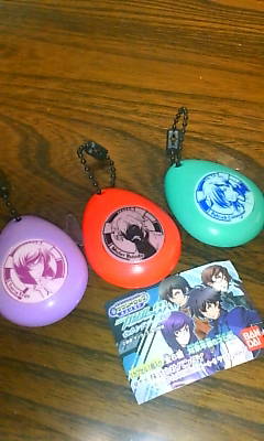 今更ながらにカティコラ?コラカティ?あたりにはまりそう。 わぁいまたマイナーだー♪ …や、00のメジャーどこか知らんけど、多分腐向け多いだろうし。 てな感じで感想はちょっと置いといて… 今日は街に出てきました。 で、ガチャガチャ発見。 00のサウンドドロップにまさかのコーラ発見。 やってみた。 がっちゃがっちゃしてみた。 1個200円でした。 赤orオレンジ、そして紫… 紫はティエリアだろうなぁ。 赤→ブシドー オレンジ→ロックオン だったのでドキドキしながら開けてみました。 ブシドー来たああああああwwwwwwwww で、ガチャガチャの機械よく見たんですよ。 「シングルあります」 …何? フィギュアとかカードとかばら売りしてる店の前だったのでね。 早速入ってみる。 コーラ発見。 …買いましたw ちなみに380円w 他のメンバーも大体これくらいの値段でしたね。 ただ、ロックオンが580円で、刹那が280円。どういうことだこれはww 主人公www まぁ、こんな感じね。 セリフはそれぞれ、 ブシドー「干渉」「手助け」「一切無用」 ティエリア「茶化さないで欲しい」 コーラ「来ちゃいましたぁ!」 ブシドーの後にティエリアとかコーラの後にティエリアを押すと完全に突っ込み要員です。 あぁ、コーラが可愛い(*´`) ちなみにヒロインコレクション(…かなぁ)もピーリスだけ安かった。何 故 だ ? んでまぁ、あと何かないかなぁ…と回る。 ちびボイスにコーラサワー発見。 …え。本物?(何)←うっかりこう思った。 箱確認(新品もあった)すると確かに…コーラがあるらしい… 買ってきたww 音声のON/OFFもあって結構しっかりした作り。 裏はこんなん。あ、穴が…!!(何) どっかにカティのフィギュア売ってませんか?← セリフは「不死身のコーラサワーです」と。 これだけ聞くと妙にシリアスボイスできゅん。 正面にカティが欲しいですww にしてもコーラが可愛い(*´`) 以上、ちまによるパトリック・コーラサワー追悼式でした(ぇえ) 図書会持ってこうかなw でも実は生きてるんじゃないかな…なんて。 今日完全放置だったけど…!!!>< | カレンダー